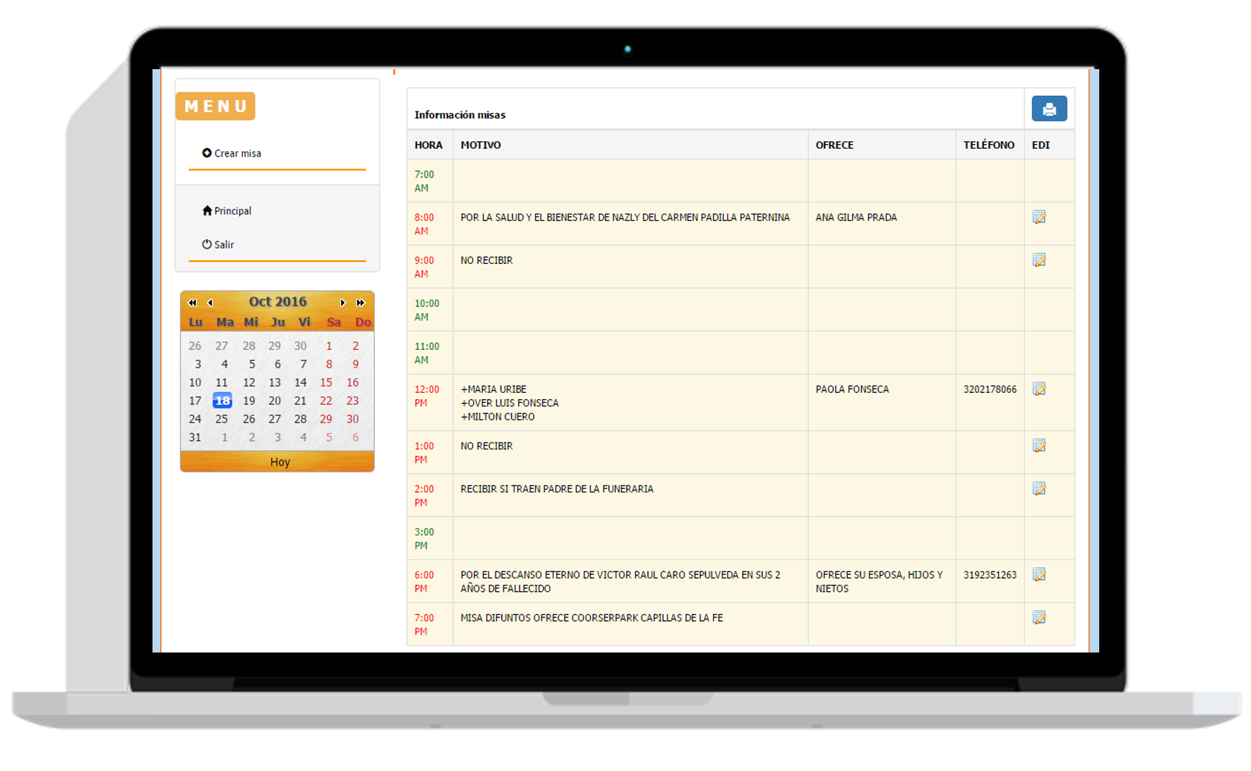 Es una manera fácil, comoda y amigable para llevar la información de las misas.